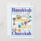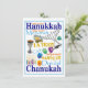 O cartão Hanukah (Hanukkah, Chanukah) apresenta palavras e símbolos do feriado Dreidel, menorah, gelt, etc.