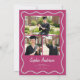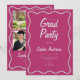 Celebre seu graduado com este convite de formatura moderno em colagem de fotos em rosa cranberry, apresentando um layout elegante e uma moldura com borda ondulada. Este convite de festa de formatura inclui espaço para várias fotos do graduado, nome do graduado, nome da escola, ano de formatura e detalhes completos do evento.
