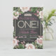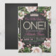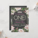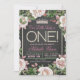 Convites de aniversário de um ano da primeira festa da pequena senhora com rosas vintage em um fundo de quadro negro com tiara e ONE pérola! Este convite de aniversário de 1 ano em quadro negro rústico é facilmente personalizado para o seu evento, basta adicionar os detalhes no estilo de fonte de sua escolha. Este é um design impresso sem pérolas reais, etc.