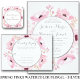 A coleção de casamentos florais de primavera pinks d'água é um design elegante com folhagem de cor rosa macia e elegante texto prateado.