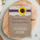 A coleção de girassol rústico é uma design impressionante que apresenta um adorável fundo de efeito de burvolta rústico com uma trim romântica de efeito de renda branca vintage acabada com um girassol e fita roxa atordoante. Esses convites podem ser personalizados para sua ocasião especial e farão o anúncio perfeito para um casamento, chá de panela, festa de noivado, festa de aniversário e muito, muito mais. *Por favor, note que Zazzle só vende convites impressos para que estes convites não tenham nenhum material real de burlap, renda, girassol ou fita.