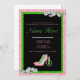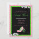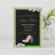Mergulhe na felicidade de uma irmandade com este design chic AKA! Um cartão de convite preto com uma borda brilhante rosa e verde. A fronteira apresenta diamantes espalhados. O fundo é uma cor damasco preta com uma base rosa. O texto "VOCÊ É CONVIDADO A UMA CELEBRAÇÃO DE IRMANHÃ PARA" está em uma fonte de rosa claro. O convite também apresenta um par de calçados cor-de-rosa de salto alto com sotaques verdes, um batom, e uma fita de pérolas, tudo em um design estilizado. Personalize-o com seus detalhes de eventos especiais para torná-lo exclusivamente seu! Agarre-os como convites imprimíveis ou downloads instantâneos.