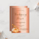 À frente: Um Janto de Ação de Graças moderno, elegante e simples. Um fundo de aparência de cobre. Decorado com uma abóbora ouro, folhagem e algumas flores brancas. O texto: A Janta de Ação de Graças é escrita com um grande estilo escrito à mão, letras castanhas e coloridas. Personalize e adicione os detalhes da sua festa. Fundo: fundo de folha de cobre falso.
