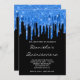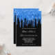 Um convite bonito para a fabulosa festa de festa de aniversário quincinera. O falso clássico e brilhante lixo azul e as gotas de folhas criadas com gráficos de arte digitais contra preto sólido. Personalize o estilo de fonte, o tamanho, o espaçamento e a cor elegantes, conforme necessário. Convites de festa de aniversário personalizáveis. As raparigas fazem os convites para perfurar folhas de folhas de glitérico modernas.