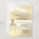 Vestidos de ouro elegantes e brilho dourado pingam em fundo dourado.