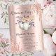 Vidro de brilho elegante, gotejamento de ouro rosa e abóbora floral em fundo de rosa de ouro.