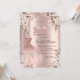 Derramamento de ouro rosa, flores de vassoura e vestido elegante em fundo de ouro rosa. Belo convite que pode ser personalizado com seu nome. Selecione o botão "personalizar" para alterar o estilo, a cor e o tamanho da fonte.