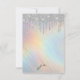 Este convite de aniversário elegante, feminino e doce 16 chic é perfeito para o seu dia especial. Ele retrata ouro impresso e brilho cintilante prateado pingando sobre um fundo holográfico e iridescente. O esquema de cores inclui pastas macios de azul, rosa, roxo, amarelo e verde. Este design é moderno, glamouroso, bonito, único e legal; o design perfeito para abraçar seus convidados.