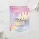 Convites Colírio Rosa Coloca Arco-Íris Holográfico Aniversá