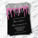 Um convite bonito para a fabulosa festa de festa de aniversário quincinera. As falsas gotas cintilantes de prata e rosa quente com brilho criado com gráficos de arte digitais contra preto sólido. Personalize o estilo de fonte, o tamanho, o espaçamento e a cor elegantes, conforme necessário. Convites de festa de aniversário personalizáveis. Concursos de gema e chic.