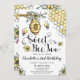 Este convite de segundo aniversário para a menina de mel fofo apresenta girassóis, colmeias, favos de mel e fontes de moda.