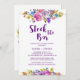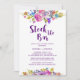 Este "stock de ameixa" que o convite ao chá de casais bares é perfeito para um chá de casamento de tema floral. O design apresenta flores magenta, rosa, roxo de ameixa e azuis brilhantes, e uma bela fonte de escrita em negrito.