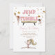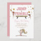 Convite de aniversário de menina. Qualquer aniversário. Ginástica, tropeçar e rosa. Glitter.