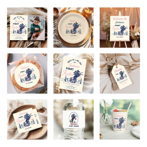 Encaixe o Primeiro Convite Fotográfico de Festa de aniversário Rodeio Cowboy