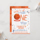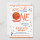 Celebre o primeiro aniversario do seu novato com o Convite para primeiro aniversario Laranja de Biscoito de Basquete. Este cartão de convite vibrante apresenta adoráveis decorações de basquete, esquema de cor laranja e azul, confete que energiza a atmosfera e um megafone que adiciona entusiasmo. Com esta estética lúdica, este incrível convite de aniversário sobre o tema do basquete é perfeito para os pais que procuram criar uma memorável celebração do primeiro ano para os seus filhos. Então, coloque seus calçados e deixe sua pequena estrela brilhar e aproveite um dia de diversão com este convite de aniversário.