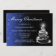 Christmas invitation in landscape orientation with color faded to blend in with solid black background. White sparkle Christmas tree decoration added.