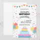 This fun and festive birthday invitation features a bright design with balloons, confetti, a cute birthday cake, and colorful party banners — perfect for kids, teens, or adults who love cheerful celebrations.