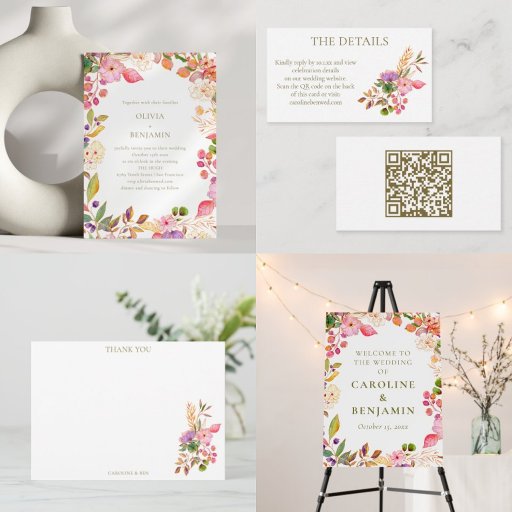 Convites Colorful Boho Watercolor Floral Elegant Wedding