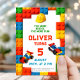 Bring creativity to life with this fun building block–themed design featuring bright interlocking bricks, toy cars, and playful colors. Perfect for kids who love to build, imagine, and celebrate in style.