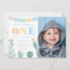 Taco de vamos sobre uma primeira festa de festa de aniversário! Um convite fotográfico com um design cactos para celebrar o primeiro aniversario do seu menino