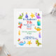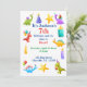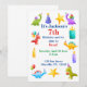 Dinossauros divertidos em cores primárias decoram este convite de aniversário