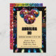 O convite de aniversário da Disco colorido e vibrante. A frente tem todos os detalhes e informações em preto, todos personalizáveis para você em um quadro de ouro leve em um fundo de uma pista de dança. O dorso tem sequências coloridas e espumantes. Convide amigos para uma festa para se lembrarem de celebrar um grande aniversário. Veja todas as outras opções de cores e suprimentos de festas nesta coleção para um planejamento de aniversário fácil. Misture e combine.