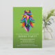 Uma cabeça de cavalo de corrida colorida brilhante e um homem de fundo verde estão representados nestes convites de festas derby. CORRESPONDENTE a itens na nossa coleção.