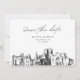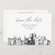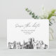 Columbus preto e branco moderno salve o convite de data. A frente mostra um desenho impressionante, dando o tom perfeito para o dia do seu casamento. Adicione sua própria foto ao verso e personalize o texto para torná-lo seu. Entre na ferramenta Zazzle design para personalizações adicionais do design.