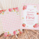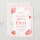 Convites Coluna Rosa Gingham Strawberry Berry Primeira Fest