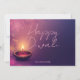 Um diya radiante brilha no centro, aninhado em um leito de motivos florais que florescem através de um gradiente rosa a roxo. O fundo parece veludo crepúsculo, quente, celebratório e rico com tradição. "Happy Diwali" brilha em elegante cursivo, com o seu nome de família ou bênção personalizada. A disposição é equilibrada, festiva e cheio de coração. Lado de trás: O mesmo gradiente sonhador envolve as costas em continuidade. À esquerda, sua mensagem personalizada, seja poética, brincalhona ou profunda, fica em uma escrita graciosa. À direita, espera-se um espaço fotográfico: perfeito para um retrato da família, um momento iluminado pelo gatilho, ou uma fotografia da vossa decoração Diwali. Os sotaques florais sutilmente enquadram a imagem, fazer que ela se sinta parte da celebração.