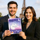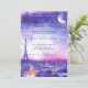 Este convite romântico de casamento da coleção Amour Éternel à la Parisienne captura o espírito poético de um conjunto de celebrações sob os céus lunáticos de Paris. Com uma ilustração sonhadora da ascensão da Torre Eiffel sobre uma paisagem urbana suavemente brilhante, a design evoca a magia do crepúsculo na Cidade da Luz — onde histórias de amor se desdobram nas ruas de pedra e cada momento sente eterno. A paleta de púrpuras, azuis e tons esmagadores cria uma atmosfera de elegância e intimidade, enquanto a lua luminosa e as nuvens delicadas acrescentam um senso de maravilha e serenidade. A mensagem, chamada de tipografia graciosa, convida convidados a compartilhar a alegria de uma união que se sente cinematográfica e profundamente pessoal. É mais do que um anúncio — é uma abertura emocional, estabelecendo o tom para uma celebração cheia de calor, conexão e memórias duradouras. Quer seja enviado como cartão autônomo ou combinado com peças de coordenação da suíte Amour Éternel à la Parisienne, este convite oferece uma mistura perfeita de arte e sentimento. Um prelúdio perfeito para um dia onde o amor floresce no coração de Paris.