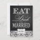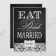 Coma Bebida e seja casado, elegantes convites para casamento, negro e branco, com elegante fundo de fibra negra.