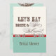 Procurando um grande chá de panela? As pias batismais elegantes e do divertimento anunciam a mensagem, "deixaram-nos comer, beber e casar-se!" em um conjunto lunático delicioso do convite do casamento. Em uma paleta de cores morna, retro do vermelho do vintage, azul do aqua, de creme e castanho chocolate - é o melhor do vintage com uma torção moderna. A parte anterior tem o texto e seus nomes com seu casamento datam. No verso são os dois ornamento da impressora com ampersand elegante da pia batismal da caligrafia da mão e o texto "comemora connosco" em pias batismais originais e do divertimento junto com a informação do convite do chá do seu casal. Há uma série completa dos produtos disponíveis com este design e nós podemos fazê-lo em todas as combinações que de cor você desejar.