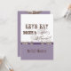 Procurando um grande chá de panela? As pias batismais elegantes e do divertimento anunciam a mensagem, "deixaram-nos comer, beber e casar-se!" em um conjunto lunático delicioso do convite do casamento. Em um limpo, paleta de cores torrada, da lavanda, do roxo da ameixa, a castanho chocolate e a branca é o melhor do vintage com uma torção moderna. A parte anterior tem o texto e seus nomes com seu casamento datam. No verso são os dois ornamento da impressora com ampersand elegante da pia batismal da caligrafia da mão e o texto "comemora connosco" em pias batismais originais e do divertimento junto com a informação do convite do chá do seu casal. Há uma série completa dos produtos disponíveis com este design e nós podemos fazê-lo em todas as combinações que de cor você desejar.