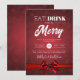 Festa Elegante de Natal / Festa de Natal / modelo de Convite de festas de inverno com a design de tipografia "Comer, Beber e Ser Feliz" e o Motif de neve da Terra Maravilha de inverno em Vermelho. Excelente a ser usado para festas de janto Corporativo, bolas e galas de inverno, gravata negra / eventos e festas de escritório.