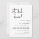 Anuncie a sua alegria para sempre em estilo com o nosso moderno cartão de convite de festas de elopemento de casamento. O nosso cartão de convite para comer, beber e dançar é ideal para casais que decidiram fugir e que querem acolher um partido para celebrar o seu sindicato. Com seu design sofisticado, mas lúdico, este convite certamente define o tom de um evento inesquecível. O cartão de convite apresenta um design minimalista com um esquema preto e branco, adicionando um toque de elegância do eterno à sua celebração.