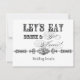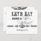 Fontes elegantes e divertidas anunciam a mensagem, "Vamos coma, beba e se case!" em um maravilhoso e caprichoso Concurso de Casamento. Em uma paleta de cores clara, nítida, preta e branca, é o melhor de vintage com um toque moderno. O lado da frente tem a mensagem e os seus nomes com a data do casamento. No verso estão dois ornamentos da impressora com uma letra elegante caligráfica manual e o texto "Celebrar conosco" em fontes exclusivas e divertidas, juntamente com suas informações de convite de recepção de casamento. Há um conjunto completo de produtos disponíveis com este design e podemos fazer isso em qualquer combinação de cores que você desejar.