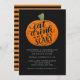Este convite festivo para o Halloween traz uma ilustração de uma abóbora com as palavras "comer, beber e ser assustador" que lhe são apostas. Tem muito espaço para todos os detalhes sobre a sua esquisita.