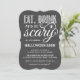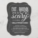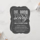 Coma, beba e seja assustador! Estes convites festivos e assustadores para as festas de Dia das Bruxas apresentam um fundo do quadro, tipografia branca e uma aranha espreitando no texto. Comprar itens de Festa de Halloween correspondentes aqui:
