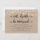 Coma, beba e seja casado, vale de janto de ensaio de casamento. Planejar uma celebração do Janto de ensaio do casamento com a futura noiva e futura noiva, antes do seu grande dia? Convide os convidados com este Cartão de Convite para Janto de Ensaio de Casamento Russo. Adicione os detalhes do janto de ensaio em letra/letra correspondente.