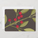O design moderno incorpora uma mistura contemporânea de tipografia escrita à mão e convida todos a se juntarem a vocês para comer, beber e ser Feliz neste feriado. O fundo ilustrado de bagas sagradas e festivas adiciona cor e cinza.