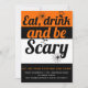 Junte-se a nós para uma comemoração de Dia das Bruxas assustadora com um convite vibrante que proclama corajosamente "Coma, beba, e seja assustador!" Esta design contemporânea apresenta elementos lúdicos como uma bruxa branca, morcegos e aranhas assustadoras, todos colocados contra um pano de fundo de faixas laranja, pretas e brancas marcantes. Prepare-se para abraçar o espírito festivo e desfrutar de uma noite cheia de diversão, assombrações e gostosidades!