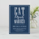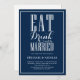 Convide convidados para o seu evento com este convite de casamento personalizável. Apresenta caligrafia moderna e tipografia clássica, perfeita para qualquer tema de casamento. Personalize adicionando os detalhes do evento. Este convite azul de marinho está disponível em outras cores e estoques de cartão.
