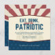 Celebre o estilo 4 de julho com este convite personalizável! Apresentando um design inspirado em vintage, este convite dá o tom perfeito para um encontro festivo e patriótico. A ousada manchete "Coma, Beba, e Seja Patriótico" captura o espírito da ocasião, convidando seus convidados a se unir nas diversão e festividades. O fundo do convite é enfeitado com raios clássicos vermelho e branco, dando a ele uma sensação nostálgica, enquanto a metade inferior apresenta uma seção azul cheia de estrelas, incorporando as cores da bandeira americana. Essa combinação de estética venenosa e elementos patrióticos torna o convite único e atraente. O que torna este convite verdadeiramente especial é a sua opção de personalização. Você pode personalizar facilmente os detalhes do evento, inclusive os nomes dos hosts, a data, a hora, o local e as informações de RSVP, garantindo que seus convidados tenham todas as informações necessárias para a sua festa de 4 de julho. Quer você esteja planejando um churrasco casual, uma exibição animada de fogos de artifício, ou uma reunião acolhedora de família, este convite é perfeito para definir a cena. Com seu design charmoso e personalizáveis recursos, este convite certamente fará com que seus convidados fiquem animados por um dia de celebração, comida deliciosa e companhia excelente.