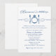 Este convite para jantar de ensaio crocante e clássico apresenta a frase "Coma, Beba e Case-se" em azul-marinho rico, combinada com um garfo, um anel de noivado e uma ilustração de configuração de lugar com faca. Os enfeites com filigranas e uma dupla rima divertida criam um tom caloroso e comemorativo para a noite anterior ao casamento. O layout com localização dupla acomoda detalhes do local do ensaio e do jantar. Todos os nomes, datas e informações do evento são totalmente editáveis.
