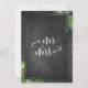 Este convite de casamento encantador ou festa de recepção apresenta um fundo de quadro-negro, bem como um emblema sobreposto de quadro-negro bordeado, entre os quais coloquei buquês desalinhados de folhagens em aquarela. Usando uma fonte de letra elegante, espiralada e moderna, eu representei as palavras "comer, beber e casar" no topo, um cabeçalho para seus detalhes pessoais. Usando a mesma fonte "chique", eu coloquei um gráfico que diz "sr & sra" no verso. Todas as camadas foram adicionadas separadamente e deixadas destrancadas para que você possa alterar o que desejar. // 57 //