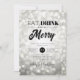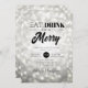 Festa Elegante de Natal / Festa de Férias / modelo de Convite de festas de inverno com a design de tipografia "Comer, Beber e Ser Feliz" e as luzes de anzol motif em Prata. Excelente a ser usado para festas de janto Corporativo, bolas e galas de inverno, gravata negra / eventos e festas de escritório.