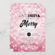 Festa Elegante de Natal / Festa de Férias / modelo de Convite de festas de inverno com a design de tipografia "Comer, Beber e Ser Feliz" e as luzes de bokeh motif em Rosa Dourado. Excelente a ser usado para festas de janto Corporativo, bolas e galas de inverno, gravata negra / eventos e festas de escritório.