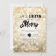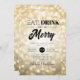 Festa Elegante de Natal / Festa de Férias / modelo de Convite de festas de inverno com design de tipografia "Comer, Beber e Ser Feliz" e luzes de anzol motif em Dourado. Excelente a ser usado para festas de janto Corporativo, bolas e galas de inverno, gravata negra / eventos e festas de escritório.