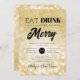 Festa de Natal / Festa de Natal / modelo de Convite de festas de inverno com design de tipografia "Comer, Beber e Ser Feliz", falso brilho e luzes de anzol no modo Dourado. Excelente a ser usado para festas de janto Corporativo, bolas e galas de inverno, gravata negra / eventos e festas de escritório.